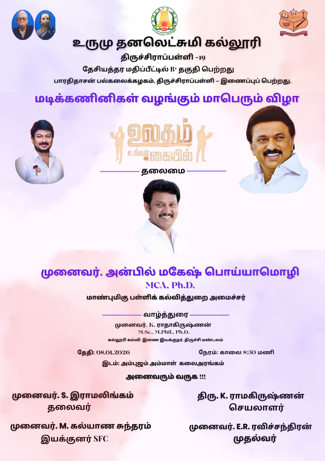 In 1952 Shri Seshachalam Chettiar who wanted to perpetuate his education services by establishing a Trust. He created the Urumu Seshachalam Chettiar Educational trust document. He documented the intention of the trust. The founder of this trust made adequate provision for the upkeep maintenance and future development. Shri Seshachalam Chettiar breathed last on 17 th November 1953. Read More →