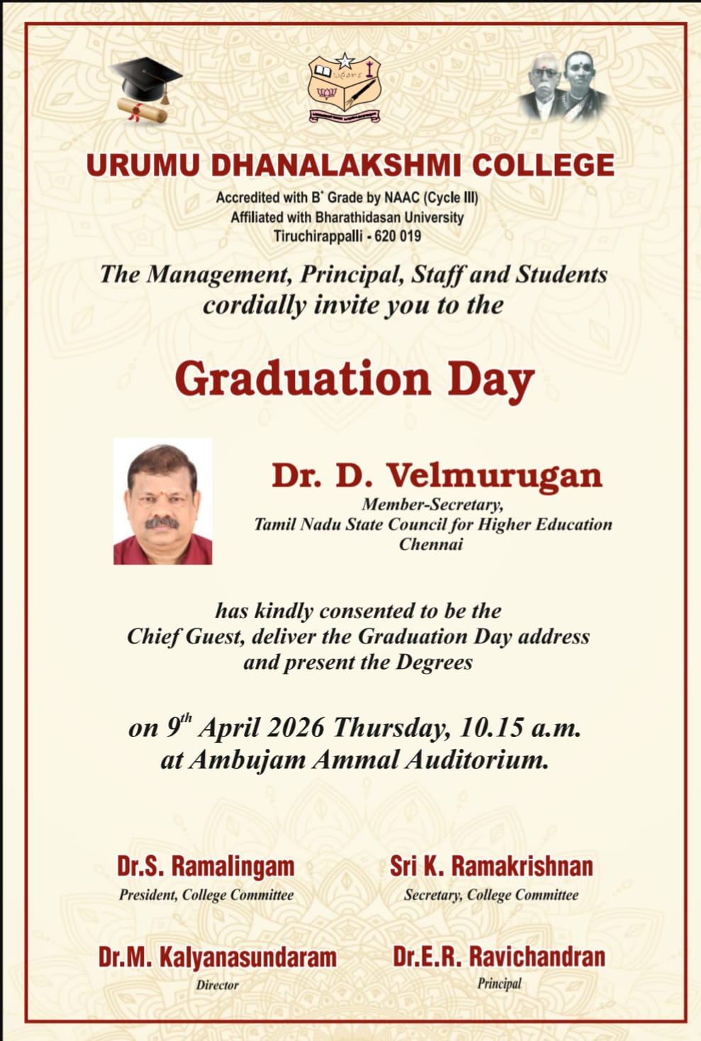 In 1952 Shri Seshachalam Chettiar who wanted to perpetuate his education services by establishing a Trust. He created the Urumu Seshachalam Chettiar Educational trust document. He documented the intention of the trust. The founder of this trust made adequate provision for the upkeep maintenance and future development. Shri Seshachalam Chettiar breathed last on 17 th November 1953. Read More →